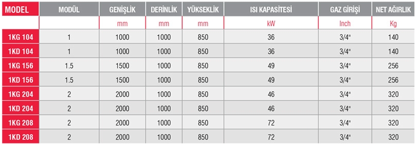 Ağır hizmet tipi ve emaye kaplı ocak dökümü bulunmaktadır. Üst döküm dizaynı isteğe göre yapılabilmektedir (Açık yada kapalı dökümlü).