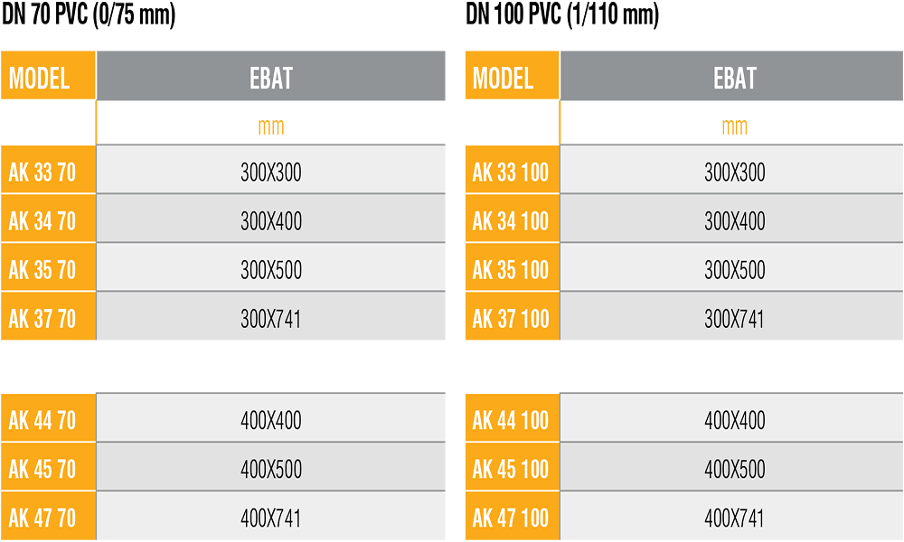 Üst ızgaralar, 300 mm genişlikteki ürünlerde, 240 mm genişlikte, 240 ve 440 mm boylarda ve 25 mm kalınlıktadır