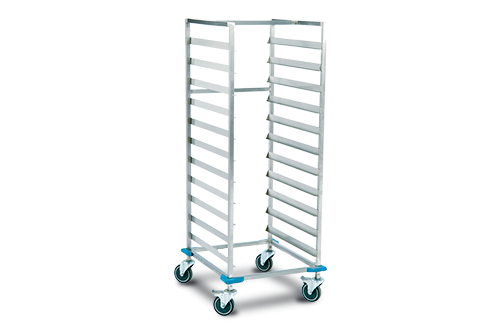 Tepsilerin uygun boşlukla istiflenerek taşınması için paslanmaz çelik saçtan 11 sıra raylı