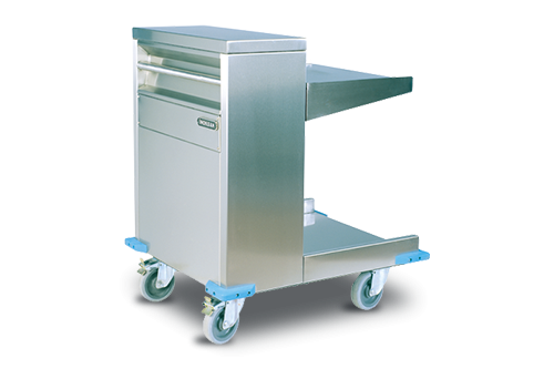 Yaylı ve rulmanlı bir mekanizma sayesinde tepsilerin aynı yükseklikte kalır.
