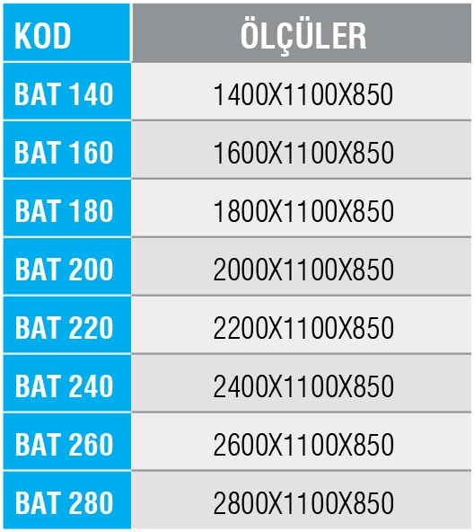 Üst tabla düz ve çift dönüşlü, arka tarafı 60 mm sırtlıdır.