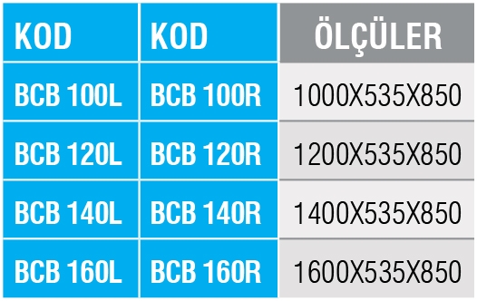 Bulaşık yıkama makinası girişine uygun, ağız/geçme bırakılarak süzülen suların dışarıya akışını önleyecek biçimde eğimli tasarlanmıştır (BYM ve BYK modellerine uygundur).