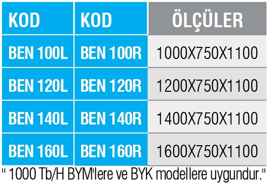 Bulaşık yıkama makinası girişine uygun, ağız/geçme bırakılarak süzülen suların dışarıya akışını önleyecek biçimde eğimli tasarlanmıştır (BYM ve BYK modellerine uygundur).