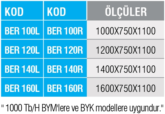 Bulaşık yıkama makinası girişine uygun, ağız/geçme bırakılarak süzülen suların dışarıya akışını önleyecek biçimde eğimli tasarlanmıştır (BYM ve BYK modellerine uygundur).