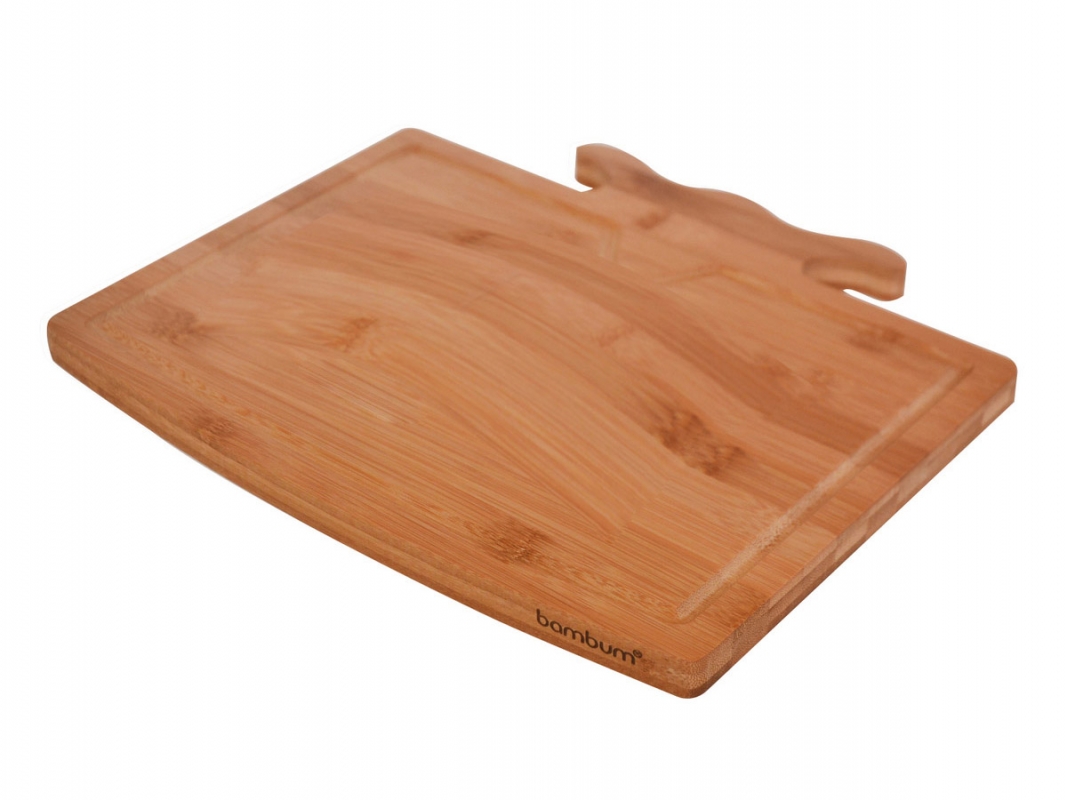 Kesme tahtalarında yeni bir çığır açılıyor. Bambum Bombi Bufi’nin bombeli üst yüzeyi ve yan olukları sayesinde doğrayacağınız bol sulu gıdaların suyu asla kesme tahtasının üzerinde kalmayacak. Dilerseniz domates, dilerseniz turşu doğrayın, su her zaman yan oluklara akacak ve doğradığınız gıdanın altı tertemiz olacak. Gıdanın suyundan kurtulmaya çalışmadan istediğiniz tabağa transfer edebileceksiniz.