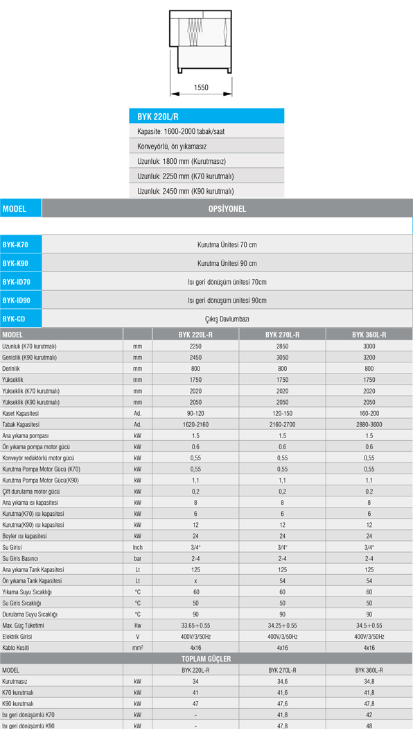 BYK 220L-R-Bulaşık Yıkama Makineleri