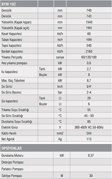 BYM 102-Giyotin Tip Bulaşık Yıkama Makinesi