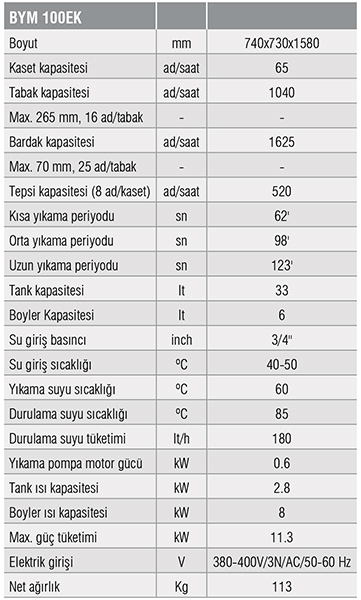 BYM100EK-Giyotin Tip Bulaşık Yıkama Mak.