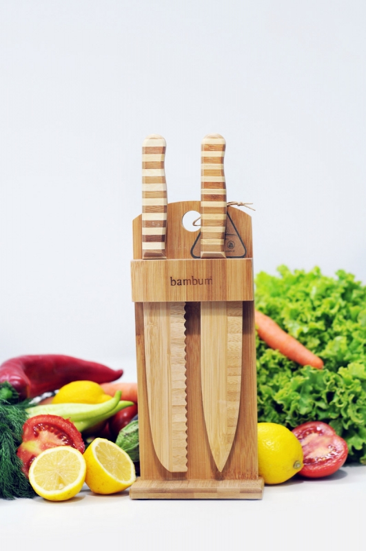 Bambum Chapati Standlı Bıçak estetik duruşu ve şık görünümüyle mutfağınızı zenginleştirecek. İçinde bulunan salata ve ekmek bıçaklarını güvenle kullanırken sağlığınıza sağlık, mutfağınıza sıcaklık katacaksınız.