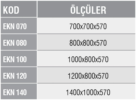Üst tabla üzerinde derin havuzlu ve indirimli yıkama teknesi, tekne üzerinde çıkarılabilir ters U profilden yapılmış ızgara tabla bulunmaktadır.
