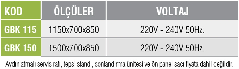 GN1/1 150mm derinliğinde 3 veya 4 adet gastronom kap konulacaktır
