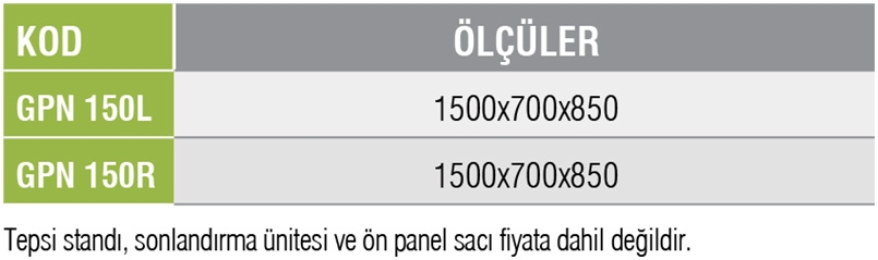 Servis hattında bulunan diğer tezgahlarla uyumu sağlayacak biçimde önden açık (kapısız) olarak tasarlanmıştır.
