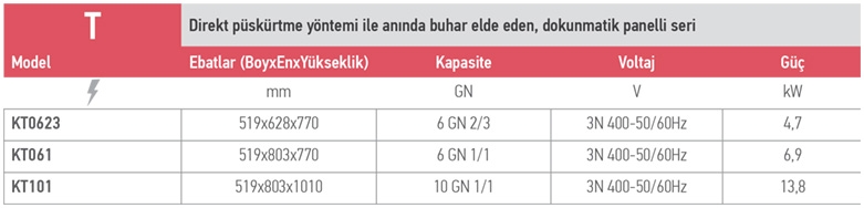 KT Serisi- Direkt püskürtme yöntemi ile anında buhar elde eden, dokunmatik panelli seri