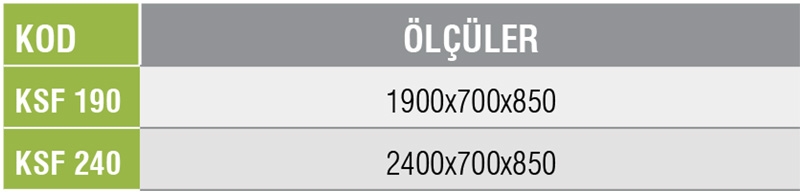 Üst tabla 1,50 mm, alt tabla ve baza 1,20 mm, bant ve kapı 1,00 mm, yan kaplama sacları 0,80 mm kalınlığındadır.