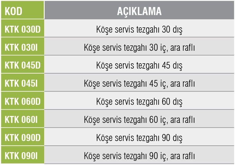 KTK-Köşe Servis Tezgahı/Ara Raflı