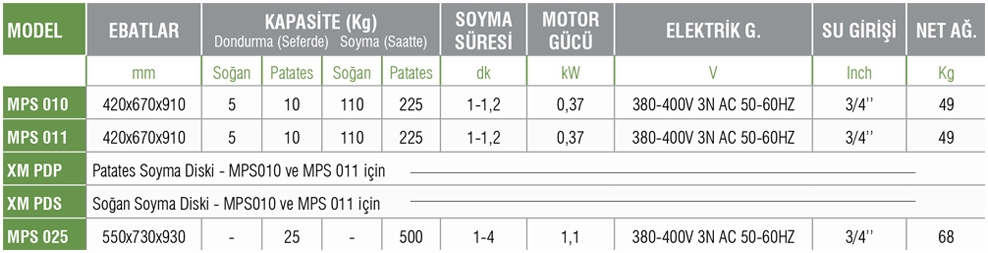 İstenirse döner tabla değişikliği ile soğan soyma işlemi de yapılabilmektedir (HOKg/h, 5Kg/sefer).