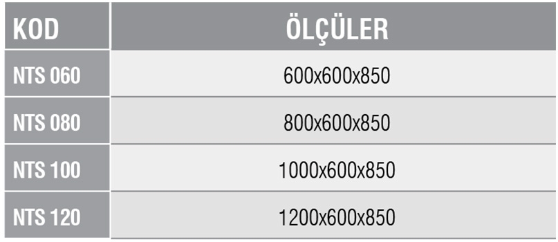 Üst tabla üzerine 30x30x1,2 mm paslanmaz profil ayaklı tost makinası koymaya uygundur.