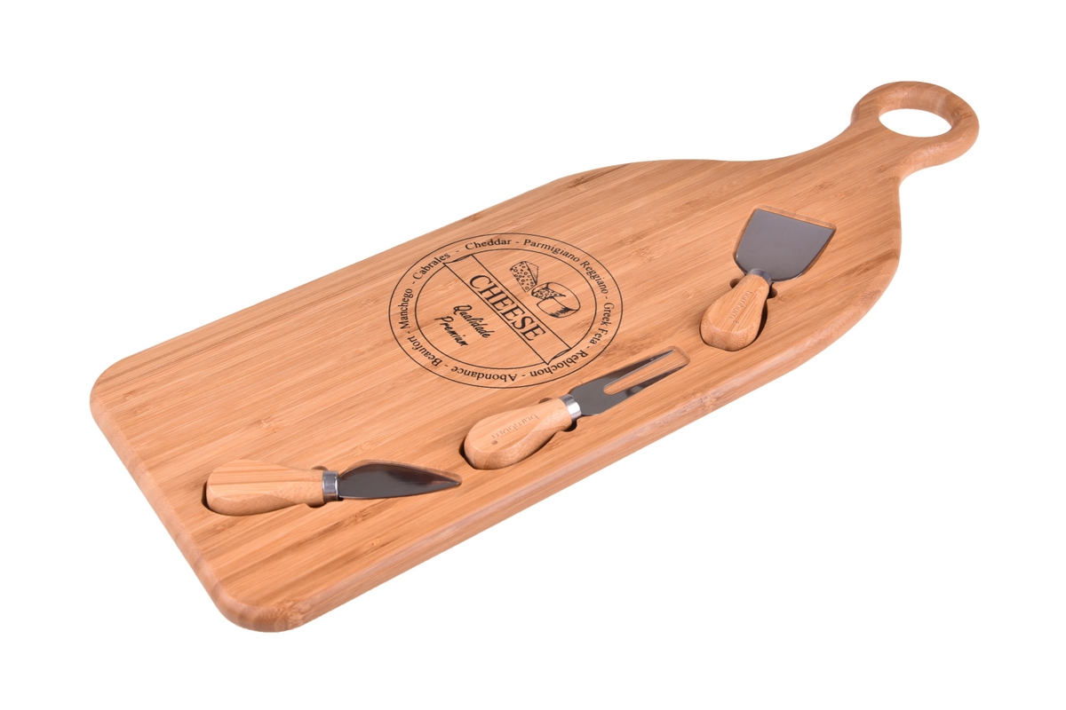 Bambum Osna 4 Parça Peynir Servis Seti, en zengin peynir tabaklarını en zarif şekilde sunmanız için tasarlandı. Bıçağı, çatalı, spatulası ve geniş yüzeyli sunum alanıyla Osna, şık ve leziz peynir sunumlarınızda en doğru yardımcınız olacak.