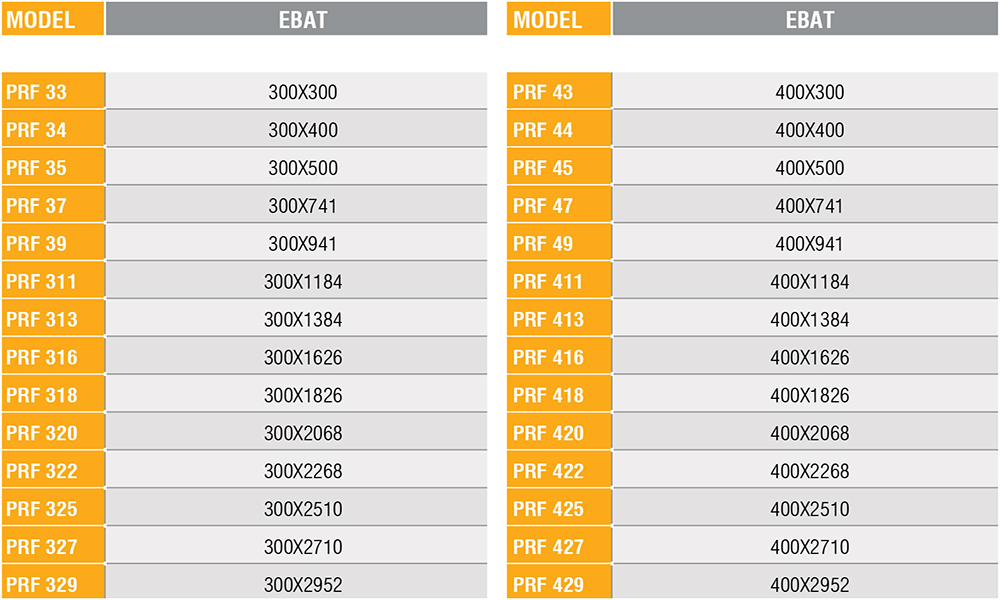 Üst ızgaralar, 300 mm genişlikteki ürünlerde, 240 mm genişlikte, 240 ve 440 mm boylarda ve 25 mm kalınlıktadır