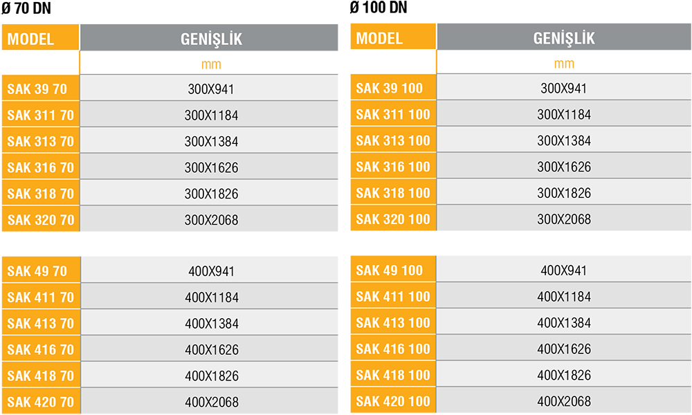 SAK-Yer Izgarası / Tavalı / Alttan Çıkışlı / Ortaya Eğimli