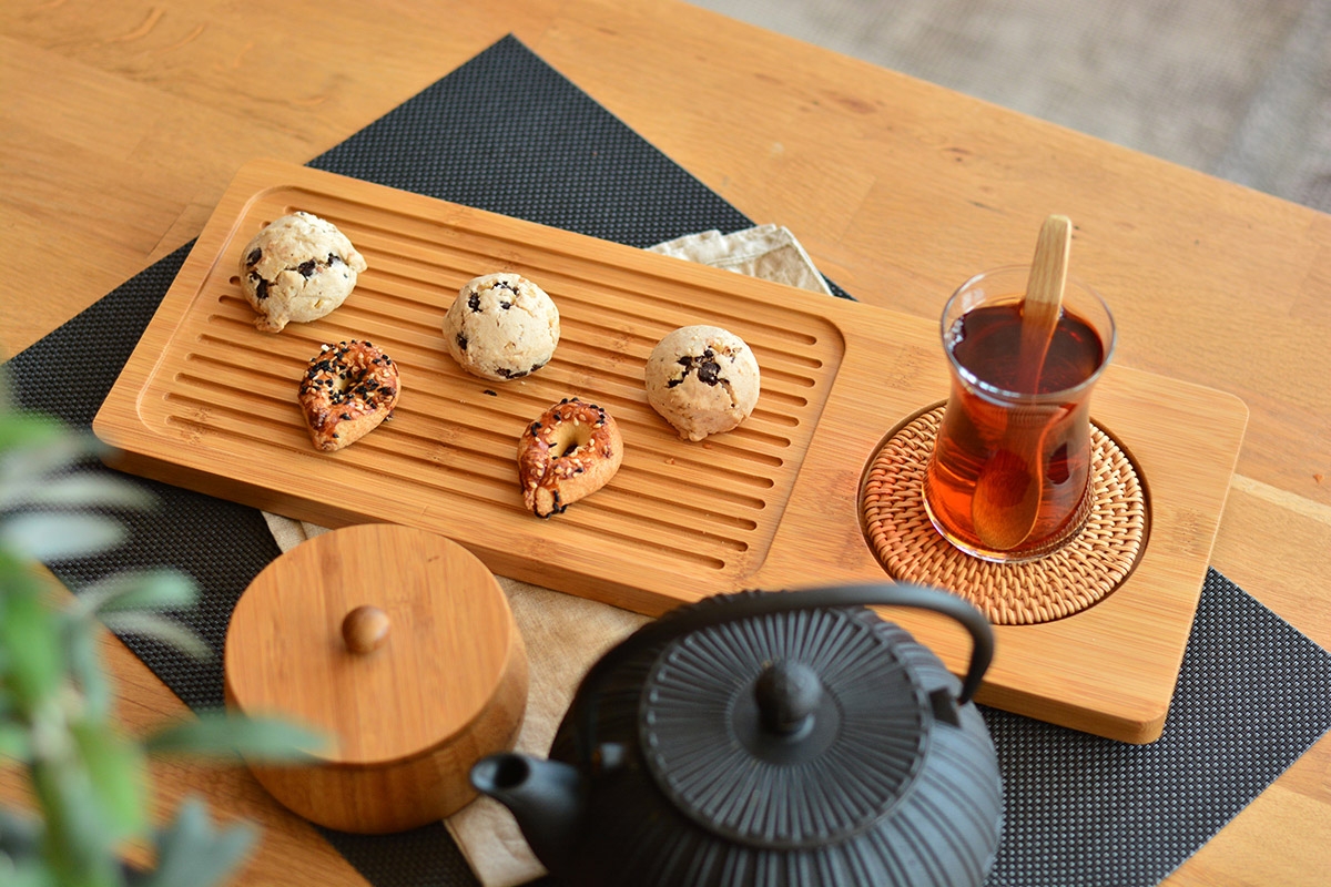 Serra, bambunun doğallığını uzak doğunun kültürü ile harmanlıyor. Çay bardağınız hasır bardak altlığı üzerinde dururken, tepsinin geniş kısmında en lezzetli kurabiyelerinizi, kanepelerinizi sunabileceksiniz.