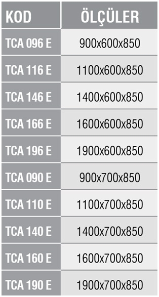 Tezgah boylarına göre, gerekli yerlerden paslanmaz çelik saç profillerle takviyelidir.