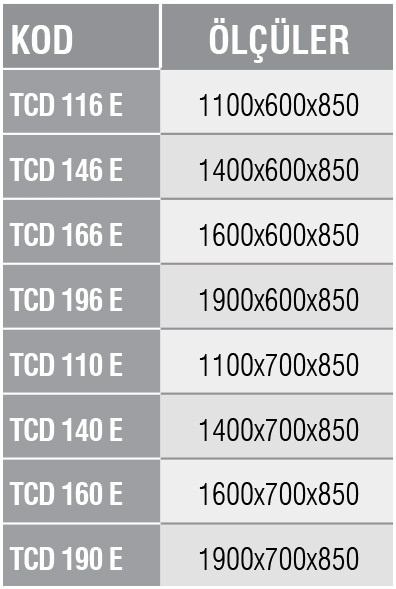 Üst tabla düz ve çift dönüşlü, arka tarafı 60 mm sırtlıdır