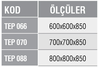 Ayaklar ve taşıyıcı konstrüksiyonda paslanmaz çelik kutu profil kullanılmıştır.
