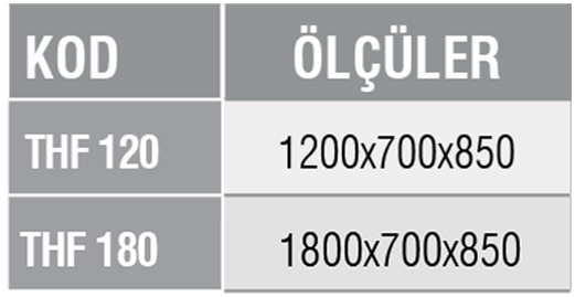 Üst tabla düz ve çift dönüşlü, arka tarafı 60 mm sırtlıdır