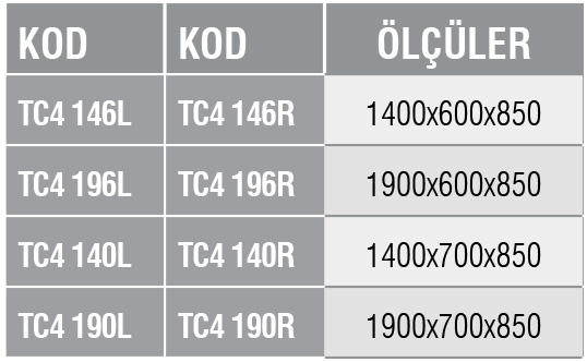 Tezgahın sağ veya sol yanına monte edilebilen 4 adet çekmece bulunmaktadır.