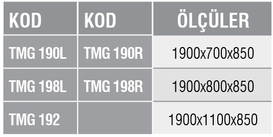 Üst tabla düz ve çift dönüşlü, arka tarafı 60 mm sırtlıdır