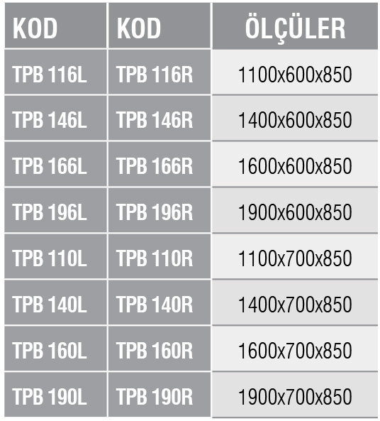Üst tabla düz ve çift dönüşlü, arka tarafı 60mm sırtlıdır