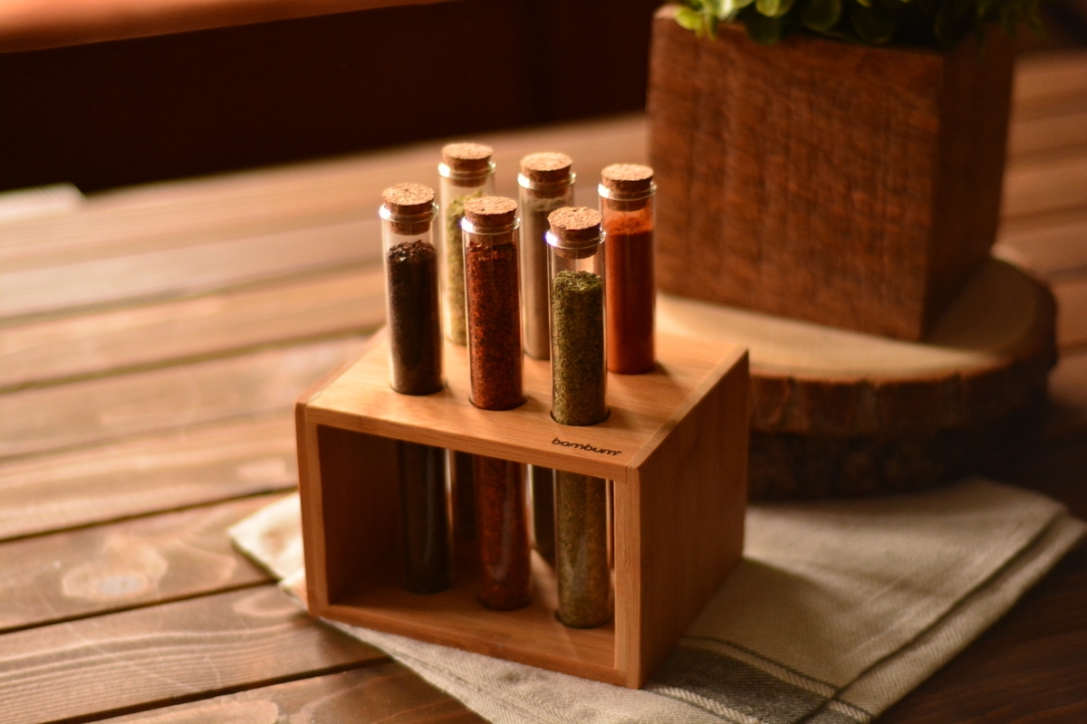 Bambum Vanilla 6’lı Tüp Baharatlık, baharatlarınızı bir dekorasyon öğesi olarak kullanmanızı sağlayacak. Deney tüpü boyutlarındaki sevimli tüplere dolduracağınız rengarenk baharatlar, mutfağınızda Bollywood rüzgarları estirecek. Vanilla, yemek yaparken de önemli yardımcılarınızdan olacak.