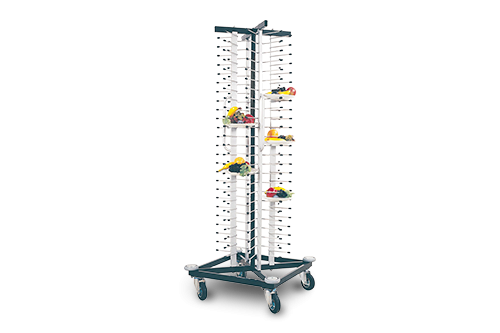 Elektrostatik boyalı Köşe tamponlu İkisi frenli, ikisi frensiz, 360° dönebilir 4 adet tekerlek Kapasite: 100 tabak
